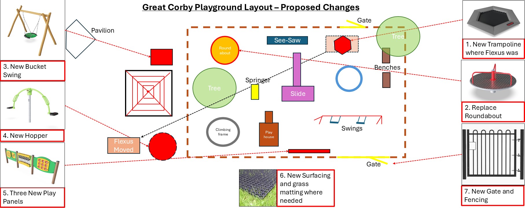 The playground in Great Corby has started to look a bit tired and worn out, so we are proposing plans to improve it and address key safety issues that were raised by an inspection carried out by Cumberland Council in January 2023.